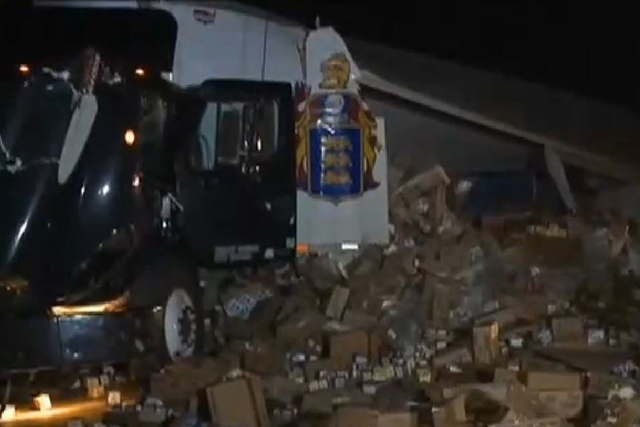 The crash left perhaps thousands of butter tubs strewn on the highway, many broken open and coating the roadway.