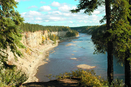 On the crossing, I survey the scene. The river is much bigger than expected, like the Mississippi. It's the relief valve for Great Slave Lake and the drain for almost 1 million square miles of Great White North as 6 million tons of water a minute makes its way to the Arctic Ocean