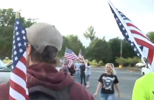 Robinson’s post spread through town and the next day, many were showing up proudly displaying American flags, POW flags and a Confederate flag.