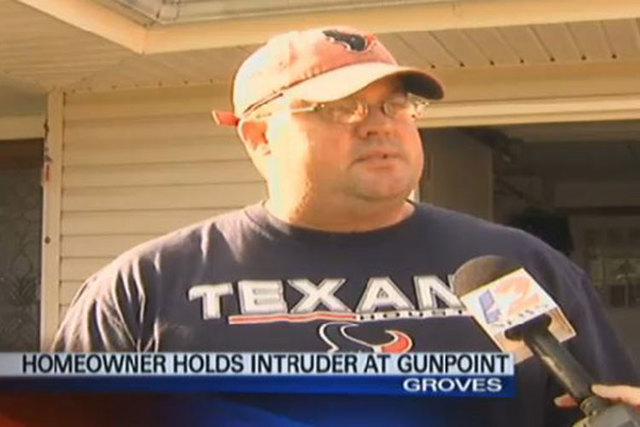 GROVES, Texas — A Groves man is behind bars and lucky to be alive after he broke into a home and was confronted by the gun-wielding homeowner.