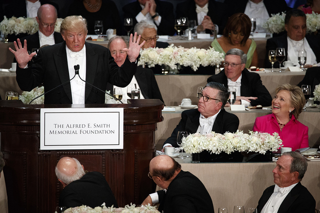 NEW YORK — The annual Alfred E. Smith Memorial Foundation Dinner, a white-tie gala in New York that is often the last time the two presidential nominees share a stage before Election Day, is traditionally a time when campaign hostilities are set aside.