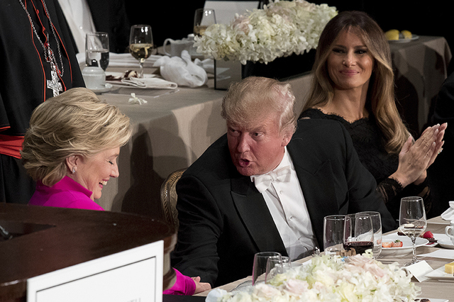 Clinton, meanwhile, was more self-deprecating than Trump, joking that she’s taken a break from her “usual nap schedule” to attend and suggesting that the audience should be pleased she’s not charging her usual fee for speaking in front of potential donors.