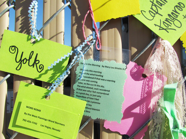 The cards were set to be attached to a metal structure and set up Nov. 2 near Bar+Bistro at The Arts Factory, 107 E. Charleston Blvd.