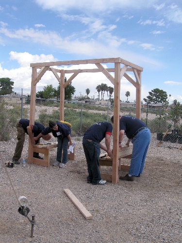 The volunteers worked with youths from the hospitality and culinary arts career center to construct planter beds, mural benches and picnic tables, said Monica Ford, president of Nevada Partners.
