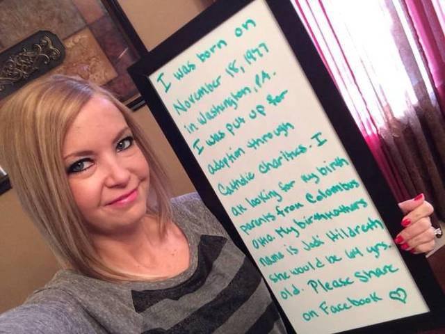 A 36-year-old Pittsburgh woman tracked down her birth mother in a week after posting a photo of herself to Facebook asking for help.